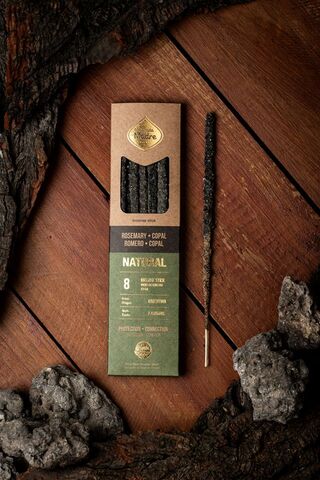 Artesanos elaboran estas varitas de incienso de forma artesanal. Utilizan una base de biomasa vegetal y aglutinantes naturales. Luego, las varitas absorben la esencia de Copal y Romero. Este proceso asegura un aroma muy intenso. La fragancia es una mezcla. Combina el toque cítrico, fresco y místico del Copal. También tiene la nota herbal, penetrante y limpia del Romero. Este perfil es muy estimulante. El aroma ayuda a centrar la mente. Las personas lo usan para el estudio o la limpieza de espacios.